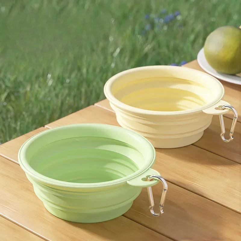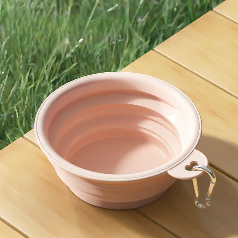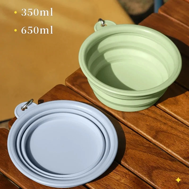 Praktischer, faltbarer Silikon-Napf für Hunde und Katzen – ideal für Reisen, Spaziergänge oder unterwegs. Leicht, platzsparend und vielseitig für Wasser oder Futter einsetzbar. Mit Karabiner zum einfachen Befestigen an Tasche oder Leine.